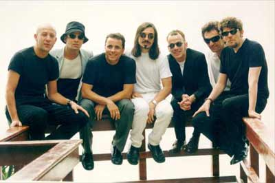 Marcelo Fromer, à esq., junto com os Titãs, em dez.98